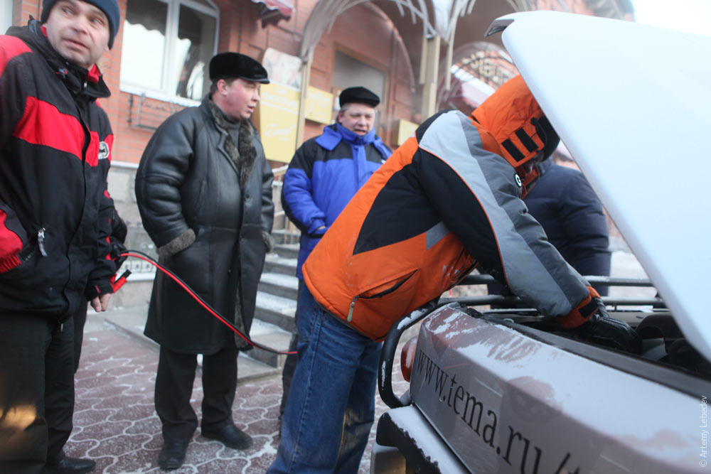 Променад на Кукусике. Часть II110, 1320 декабря 2009 ПермьНа карте мираЗа цирком находится предприятие, выполняющее заказы Почты России. ![]() Тут дедовскими методами изготавливают штемпели для почтовых отделений. Буквы набирают из кассы, а потом вытачивают оттиск из металла с помощью специального фрезерного пантографа. ![]() Перейдем в следующий цех. ![]() Еще здесь изготавливают штемпелевальные машины. Оказывается, есть такие. Их покупают себе предприятия, которые отправляют много писем. Чтобы не клеить марки на каждый конверт, предприятие покупает штемпелевальную машину, каждый штамп которой списывает сумму денег, заранее забитую в аппарат. У почты существует огромный штат людей, которые ездят по предприятиям и пополняют кредит в штемпелевальных машинах. Разумеется, во всем мире это делается через интернет (предприятие переводит деньги, аппарат пополняется по кабелю), но мы еще так не научились. ![]() Когда-то тут делали классические советские почтовые ящики. ![]() А сегодня делают новые российские. Корпуса ждут покраски. ![]() Потом на них нанесут надписи. ![]() В результате получится страшная красота. Полный зал ЯПВ-Н-П — ящиков почтовых внутренних настенных простых. ![]() Еще бывают и напольные варианты повышенной вместимости. Я такие видел только при входах в крупные отделения связи. ![]() А еще бывают ящики желтого цвета. «Для отправлений первого класса». Называются ЯПВ-Н-С (специальные). ![]() Наступили морозы под −40 °C. Ездить по городу стало сложно, потому что тепло из выхлопных труб машин, особенно автобусов, особенно ночью, превращаясь в облако пара, полностью заслоняет обзор. ![]() На следующее утро Кукусик не завелся, аккумулятор не выдержал пытки морозом. Я написал в ЖЖ пост с просьбой о помощи и уже через 20 минут приехал Коля. ![]() Еще через 20 минут желающих помочь скопилось столько, что на улице Петропавловской-Коммунистической образовалась пробка. Способствовало этому и то, что на местном «Эхе Москвы» рассказали о случившемся. ![]() В результате добрые люди добуксировали Кукусика до мойки, где он отогрелся. Обнаружилось, что залило свечи. Купили и поставили новые свечи. На всякий случай я заехал на официальный тойотовский сервис — оказалось, что свечи поставили не те, а более короткие. Проведя в Перми на сутки больше запланированного, на свежеобследованной машине я отправился обратно в Москву. ИжевскНа карте мираТут я был когда-то в мае 2001 года, но кроме территории завода ИЖ ничего не видел. Не удивительно, что на удмуртском «Ижевск» звучит так же, как на английском — «Иж кар». ![]() Город довольно-таки унылый. ![]() Лед на пруду пилят, все как в XIX веке. ![]() Урны зеленые, сетчатые. ![]() Есть, впрочем, и серые. ![]() Красива табличка троллейбусной остановки — почти как в Йошкар-Оле (хотя до Кременчуга им обеим, конечно, далеко). ![]() В Ижевске я не смог найти ответ на давно мучающий вопрос: почему павильоны автобусных остановок не освещаются внутри, даже когда рядом стоит полностью электрифицированный киоск? Что может быть приятнее освещенной остановки. ![]() Конечно же главная достопримечательность Ижевска — оружейный мастер Михаил Тимофеевич Калашников. В самом центре города стоит музей Калашникова. Перед входом в музей Калашникова стоит памятник Калашникову. Один из проспектов носит имя Калашникова. Каждый человек знает про автомат Калашникова. И при этом