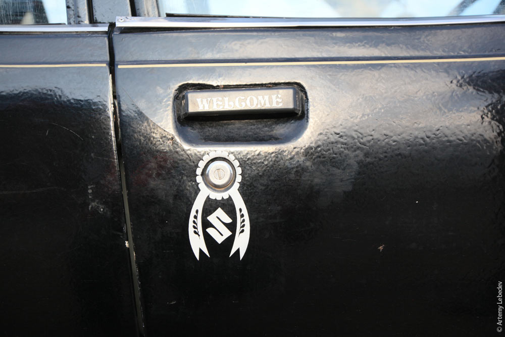 Сами грузовики оформляются невероятным образом. Кроме того, что они полностью расписаны и обвешаны чеканками и побрякушками, у них в обязательном порядке возводится козырек-кокошник над кабиной, а двери заменяются на резные деревянные.