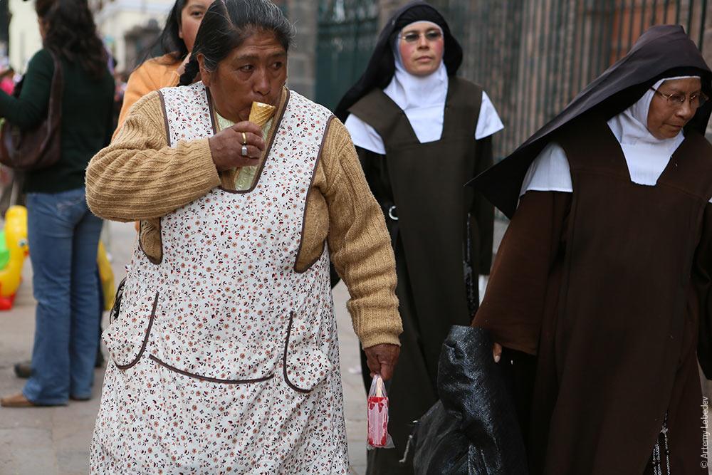 Перу. Часть II. ГородаНа карте мира28 декабря 2012 — 2 января 2013 ЛимаНа карте мираНа вид столица весьма скучна. ![]() Но при ближайшем рассмотрении в глаза бросается одна важная деталь. ![]() Все дома окружены отдельным периметром оград с колючей проволокой, заборами, решетками и другими средствами держать потенциальных агрессоров и грабителей на расстоянии. Хотя тут все спокойно, никто ни на кого, вроде, и не собирается напасть. ![]() Лима — уникальный город. Здесь разорился бы любой продавец зонтов. Тут не бывает дождей (немного моросит ко всеобщему удивлению раз в год). Зато на улице можно встретить солнцефор — прибор, показывающий солнечную активность. ![]() Недавно раскопанная пирамида из глиняных кирпичей простояла много сотен лет как раз благодаря тому, что с неба ничто ее не заливало. ![]() Типичная местная урна похожа на воплощенный в жизнь логотип «Андроида». ![]() Светофор. ![]() Гидрант. ![]() Бедный квартал. ![]() Европеец может подумать, что белый Христос с распростертыми руками в мире один — в Рио-де-Жанейро. Это не совсем так. В латиноамериканских странах обожают ставить белую фигуру Христа с распростертыми руками на каждый холм. ![]() В городе работает система скоростного автобусного транспорта (как в Куритибе, Гватемала-сити или Боготе). ![]() Встречаются полицейские на «Сегвеях». ![]() Ежедневно происходит довольно странная церемония. Оркестр на территории президентского дворца за решеткой забора выходит пройтись и подудеть в трубы. Зрители должны наблюдать за происходящим на противоположной стороне дороги. ![]() Граффити. ![]() Буква S в круге означает безопасную зону во время землетрясения. ![]() ПисакНа карте мираНа деревенских рынках все жители — в традиционных одеждах. ![]() А чуть отъедешь от деревни — начинается одежда как у всех. ![]() ОльянтайтамбоНа карте мираПеруанский пейзаж. ![]() Перуанцам повезло — инки оставили тут кучу следов своей жизни. ![]() И самое потрясающее — даже не могучие террасные города. А простые улицы. Вот типичная улица времен инков, которая жива и функционирует до сих пор (мостовая и каменная кладка по бокам — времен инков): ![]() Здесь надо сесть на поезд до Мачу-Пикчу, так как автомобильных дорог до туда нет. ![]() Мачу-ПикчуНа карте мираУрны. ![]() Рождественская елка из пластиковых бутылок с вертепом внутри. ![]() Кто-то когда-то решил тут поселиться, поэтому сегодня туристам есть чем заняться. ![]() Я больше чем уверен, что каждый читатель этих скромных заметок о путешествиях мечтал увидеть, как выглядит уринал у подножья Мачу-Пикчу. ![]() Само поселение инков могло бы выглядеть естественно — в виде груды камней (как в правой части снимка): ![]() Но тут все восстановили и реконструировали, так что ходишь и дивишься. ![]() Как инки додумались до каменной кладки, улиц, домов с шатровыми крышами и другими признаками европейской цивилизации? Ведь никаких контактов культур не было в течение десяти тысяч лет. ![]() КускоНа карте мираВ Куско самые красивые в мире светофоры. ![]() Такого больше нет нигде. ![]() В рифму к светофорам сделаны автобусные остановки. ![]() Тротуары выложены прекраснейшими каменными ромбами. ![]() Афиши многослойны и прекрасны. ![]() Названия заведений культуры и искусства выполнены в технике тиснения в штукатурке. Выглядит потрясающе красиво. ![]() Весь город наполнен улицами времен инков. Когда испанцы приходили, они немного улучшал