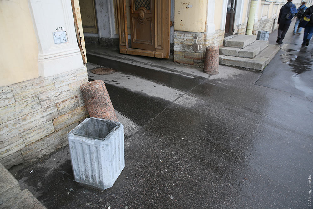 Петербург планировали с чистого листа, и получилось хорошо, чего обычно нельзя сказать о других городах, которые с нуля построили (типа Бразилии, Канберры или Астаны). Весь город плоский как стол (что очень удобно для катания на велосипеде). Все улицы прямолинейны, как стрелы. Стройности добавляет и соблюдаемый регламент, благодаря которому здания на одной улице строятся одной высоты. Питер — город перспективы. ![]() И еще Питер — город арок. ![]() Для разбавления ровности тут построено очень много зданий с полукруглыми фасадами. ![]() Крыши невероятно красивы, и любой петербуржец тысячу раз бывал на них, а у москвича аналогичные истории редки и подаются как удача. Если удается найти точку повыше, уходить с нее не хочется совсем. ![]() Тут есть дворы-колодцы. ![]() Собственно, тут много дворов. И они обычно пронумерованы. ![]() Сегодня дворы любят запирать воротами и калиткой на магнитном замке. Чтобы нельзя было с улицы нажать на кнопку открывания двери, кнопку располагают за два метра от калитки и еще отгораживают металлической пластиной, чтобы неповадно было длинной кочергой тыкать кому не следует. ![]() Так как площадь дворов больше, чем фасадов на улицах, большинство бизнесов находятся как раз в глубине. Главная питерская деталь — вывеска метровой ширины со стрелкой около арки и надписью «во дворе». ![]() Если вдоль дороги образовалось место, куда хочется припарковаться — это как раз въезд во двор через арку. Тут стоять нельзя. ![]() Тут есть полноводная и широкая река, а также много каналов и речек, не говоря уже о выходе к морю. В Питере вода течет по улицам, в Москве — из крана. ![]() Поэтому в городе никого не удивляют портовые краны и большие корабли (для которых, собственно, и разводятся мосты). ![]() В нескольких местах еще сохранились наклонные приставные стеклянные витрины, которые было очень модно в 1960-х делать. ![]() На каждом мосту стоит табличка с названием. ![]() Безумие нумерации затыкает московские примеры за пояс. «Загородный, 35, корпус 3, литер Н», каково, а? ![]() В какой-то момент питерские власти решили скопировать уличные указатели из Парижа или Бухареста, но не поняли зачем нужно на номере указывать номера соседних зданий. Поэтому просто пишут следующее число по четности. А нужно указывать здание на углу ближайшего перекрестка. ![]() Огромное количество перекрестков не предназначено для пешеходного перехода. Хочется перейти, а нельзя. ![]() Дорожные полицейские сидят в стаканах. ![]() Люки и щели ливнестоков обозначены желтым. ![]() Питер — колыбель революции. Здесь до сих пор сохранились настоящие пролетарии, которые отдадут жизнь за обслуживаемые до сих пор паровозы. ![]() Стройка обязательно должна быть обозначена забором синего цвета. Если не синего — то это или не стройка, или не Питер. ![]() Питерские зебры всегда делятся на две части, даже когда половины такие широкие, что с первой не видно вторую. ![]() Перед каждой аркой установлены тумбы — колесоотбойники. Они выполняли свою функцию еще со времен, когда в арку не вписывались на лошади с телегой. ![]() У парадной можно встретить декроттуар, господа. ![]() Под водосточной трубой оборудована специальная каменная ниша, куда стекает вода (чтобы такая же ниша не образовалась естественным образом на панели). ![]() В Питере есть правило, по которому все водосточные трубы должны быть покрашены в цвет здания. Москв
