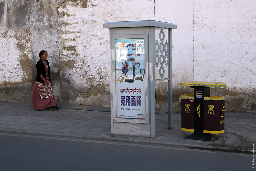 Тибет. Часть II. ГородаНа карте мира24–27 сентября 2013 В традиционной тибетской деревне стены домов и заборов обвешивают коровьими лепешками. ![]() Дома крестьян, даже самые простые на вид, обязательно имеют богато украшенные окна и двери. Над главным входом обустраивается лоджия или веранда, что говорит нам о том, что уют колхозникам не чужд. ![]() ЛхасаНа карте мираНеплохой город. ![]() С сильным китайским влиянием. ![]() С очень сильным китайским влиянием. ![]() Автобусная остановка. ![]() Почтовый ящик, в облике которого угадываются черты прадедушки из Англии. ![]() Городские урны все состоят из двух частей для раздельного сбора мусора и того, что можно переработать. ![]() Самый известный тибетский объект — Потала, дворец Далай-ламы. Сам Далай-лама был изгнан из страны в 1959 году, сегодня это музей. Но китайцы не могут просто так позволить стоять символам чуждых религий. Поэтому перед каждым значимым объектом втыкают какой-нибудь невероятно безвкусный, но огромный монумент каким-нибудь очередным павшим борцам или защитникам. Обустраивают площадь, ставят почетный караул и пр. То есть показывают, какая религия тут главнее. ![]() Дворцовая урна. ![]() Кстати, китайцы вообще мало о чем переживают, но вот государственная идеология — это святое. Я в шутку спросил у гида, когда у Далай Ламы приемные часы, так он весь бедный побледнел, оглянулся по сторонам, и шепотом сказал, что тема для разговора неудачная. Наверное, такой же эффект можно было вызвать у интуристовского гида в Москве в 1950 году, спросив, нельзя ли к товарищу Сталину на шашлык напроситься. ![]() При этом в декоративных целях проявлять религиозность не запрещается — это привлекает туристов. Вот жгут какие-то ветки. ![]() Ну что со старух деревенских возьмешь, пусть простираются. ![]() В фонтан здесь принято кидать купюры на память. Тонут они плохо, надо помогать. ![]() Городской фонарик. ![]() Столбики, ограждающие тротуар. ![]() Проспект. Типично китайский по стилю. ![]() Телефонная будка. ![]() Невероятного уродства пешеход на светофоре, у которого болтается одна нога, что символизирует ходьбу. ![]() Обычно пешеходные светофоры в Тибете представляют собой довольно высокие колонны, на которых изображена пиктограмма ростом в полметра. ![]() Самый любопытный светофор — автомобильный. Нарисована одна огромная цветная полоса, которая уменьшается, пока не превратится в квадрат. Справа налево уменьшается красный цвет, слева направо — зеленый. Время и индикация в одном флаконе. ![]() НагарзеНа карте мираТаксофон. ![]() Еще таксофон. ![]() Гидрант. ![]() Городской маркет еды. ![]() ГьянгдзеНа карте мираЗдесь красивые храмы в городе. ![]() И за городом. ![]() ШигадзеНа карте мираЗнак пешеходного перехода повернут лицом к пешеходам, поэтому водители его никогда не увидят. ![]() Девушки-полицейские катят переносной пункт регулировщика. ![]() Город просыпается. ![]() |