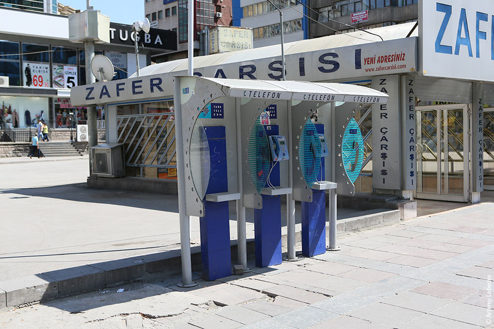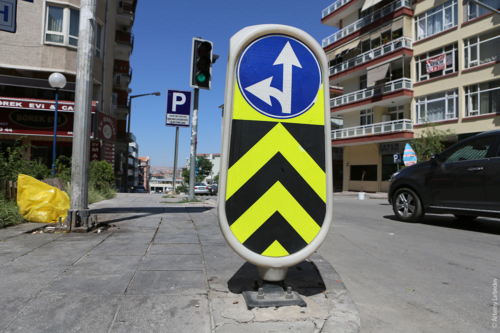 АнкараНа карте мира26–27 августа 2012 Город расположен посреди пустыни. ![]() Дома и зелень позволяют забыть про унылый пейзаж и скучные барханы. ![]() В центре фонарные столбы растут полукругами, создавая эффект перемещения по скелету кашалота. ![]() Типичная столичная скамейка из труб разного диаметра уродлива. ![]() Указатели направлений напоминают старую французскую модель (как в Алжире или Того), только без фирменного наконечника. ![]() Уличный указатель. ![]() Почтовый ящик огромного размера имеет четыре щели для бросания писем — со всех сторон. Ящик украшен национальным орнаментом и выглядит как будто он из чугуна. Тук-тук. Бэ, пластик. ![]() Такси не ездят в поисках клиентов, а стоят на парковках, расположенных в каждом квартале. ![]() А каждые сто метров на столбе висит кнопка вызова такси для тех, кому лень пройти триста метров. Нажимаешь, через минуту подъезжает машина. Невероятно удобно и практично, нигде не видел систему вызова такси такого масштаба (обычно на центральной площади поставят одну тумбу с кнопкой и успокаиваются — как в Милане или Ростове). ![]() Самая невероятная городская деталь — пустые пятилитровые бутыли из-под воды, в которые собирают пластмассовые крышечки от маленьких бутылок воды. Висят так же часто, как и кнопки вызова такси, иногда даже на тех же столбах. ![]() Дело в том, что крышечки — валюта для бедных. Один килограмм крышек стоит 8 лир. Сердобольные люди не выкидывают крышки, а кладут их в пустые бутыли, чтобы инвалид мог забрать себе накопившееся. Производители в свою очередь экономят на пластике: слева — обычная крышка, справа — турецкая. ![]() Одна часть тротуаров в городе ограждена столбиками, похожими на пешек. Как и почтовые ящики, столбики сделаны из пластмассы. ![]() Другая часть тротуаров ограждена бетонными грибочками и шарами, которые, надо полагать, лучше справляются с задачей, нежели пластик. ![]() Урны располагаются в декоративных деревянных футлярах, как в Рамалле. ![]() Половина городских деталей собралась в одном месте — кнопка вызова такси, бутыль для сбора крышек, за столбом прячется урна, а на фоне стоят столбики-пешки. ![]() Контейнер для сбора макулатуры. ![]() Контейнер для сбора стеклянных бутылок. ![]() Пример плохого городского планирования — мусоросборники (огромные подземные бункеры) поставлены за ограждением, через которое хрен перелезешь. ![]() Типичная конструкция для размещения билбордов. ![]() Идет снос дома. ![]() Школьный автобус представляет собой микроавтобус, в обязательном порядке украшенный сзади черно-желтыми диагональными полосами. ![]() Разделитель движения тоже похоже украшен. ![]() На автобусных остановках висят овальные знаки с номерами и названиями маршрутов. ![]() Новый знак турецкой лиры встречается уже на половине ценников. ![]() Удивительным образом основная застройка Анкары похожа на Тель-Авив — такое же устройство кварталов, такие же шлагбаумы перед проездом к каждому дому. И такие же электрические столбы фермного типа, украшенные юбкой из шипов от желающих вскарабкаться. ![]() Столб, украшенный конденсаторами и трансформаторами (наверное) в виде круглых бочек. ![]() В некоторых местах столбы покрыты специальными антиплакатными пупырями. ![]() Старые таксофоны. ![]() Новые таксофоны. ![]() Гидрант. ![]() Крышка люка на петле. ![]() Светофор — как в Стамбуле. ![]() Дорога становится скользкой во время дождя