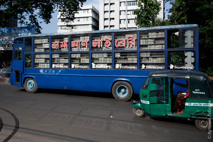 Бангладеш. Часть IНа карте мира9–11 мая 2007 По площади Бангладеш как Литва и Латвия вместе взятые. Зато народу тут на восемь миллионов больше, чем во всей России. Монако, например, самая населенная территория в мире ну и что? На глаз плотность населения никак не оценить, а фотография толпы будет спекуляцией. Можно ведь проиллюстрировать шестью лодками: ![]() А можно и шестью учениками в кузове «школьного автобуса»: ![]() Еще Бангладеш считается самой бедной страной в мире. Но, опять же, непонятно как эту бедность оценивать на глаз. Считать количество семей, у которых все имущество состоит из трех кружек? На вид бедность тут такая же, какую можно увидеть в любой другой стране. Вот, скажем, коммунальная кухня в прибрежной деревне: ![]() Тут огромная нехватка воды (можно позавидовать западным соседям из Калькутты). Не все живут на берегу, некоторым городским жителям приходится использовать возможность принять душ во время дождя. ![]() Если что-то и бросается в глаза сразу, так это количество велорикш. Тут их точно больше, чем где-либо в мире. А данная фотография, хотя я и старался подобрать сгусток поплотнее, передает только треть ощущения: ![]() Каждая кибитка должна быть обязательно разукрашена. ![]() Среди мотивов оформления киногерои и архитектура. Один из болтов конструкции обязательно попадает на рот актрисе, напоминая соску. ![]() Провода (в местах где есть электричество, конечно) макаронятся от души. ![]() Дом совершенно не обязательно должен быть достроен, чтобы в нем поселились. ![]() Угол дома в оживленном районе. Подобное зрелище еще привлекает внимание, но довольно скоро Дакка отстанет, потому что по темпам обезображивания города никто в мире не догонит Москву. ![]() Никого не удивляет продавец напитка под названием «Уро-кола». Привыкли. ![]() Бангладеш мусульманское государство. Поэтому тут часто ходят в балахонах. ![]() Конечно же, главным отличием от западного соседа (после религии) является способ мужского ссания на улице. В Индии все ссут стоя. Тут сидя. Целомудренный читатель может подумать, что на фотографии изображен человек в процессе молитвы. Нет, дорогой читатель, мужик ссыт в специальную канаву. Вероятно, подобная традиция появилась из-за того, что балахон, у которого нет никакой ширинки, задирать неприлично. ![]() Отхожие каналы расположены повсюду вдоль стен. Женщины, разумеется, пользоваться ими не могут начать с того, что они вообще должны дома сидеть. Вот очередная канава, за стеной непонятным образом существующий тут армянский храм. ![]() При храме есть старинное армянское кладбище. Охраняет все это какой-то старик с домашней птицей. ![]() Вот интересно. В центре Москвы недавно открылось очередное нагромождение развлечений для среднего класса под названием «Ереван Плаза». Жаль, за советом не пришли: я бы порекомендовал деньги, потраченные на выпиливание и подсветку отвратительного (и лишнего) слова «плаза», потратить на поддержку островка собственной культуры в далекой Дакке. Там бы этих денег до следующего тысячелетия хватило. ![]() Кто-то же должен позаботиться о культуре. Вот, например, автобус-библиотека. Справа от него пердоцикл, второй по популярности после велокибитки вид транспорта. Пердоциклы пускают туда же, куда и автомобили, а велорикшам в самый центр въезд запрещен совсем иначе не проехать будет. ![]() Светофоры в стране появились не
