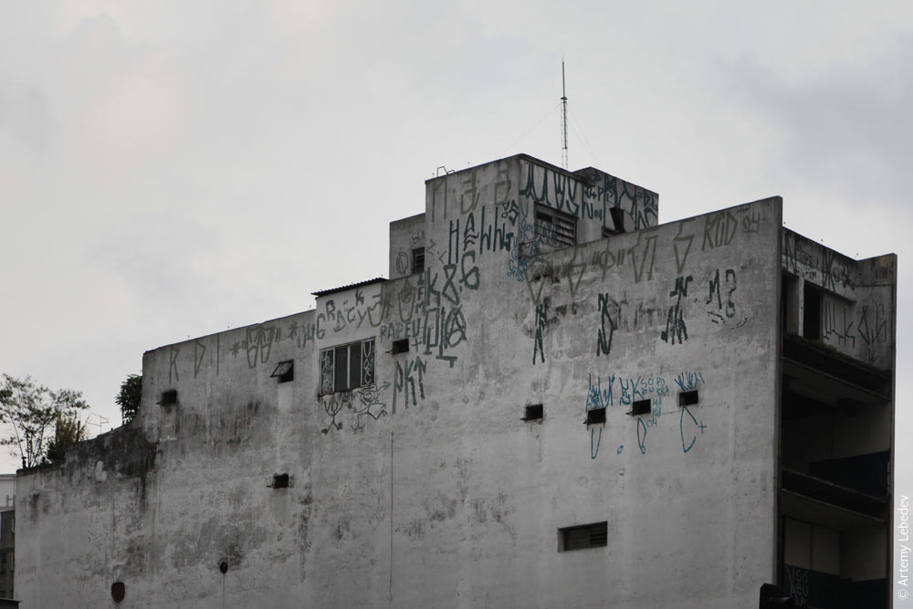 Одного только этого вида достаточно, чтобы понять: Бразилия более развита, чем Россия. ![]() Сан-Паулу — это такой бразильский Франкфурт или Шарлотт, только более живой. Город расположен на разных уровнях. ![]() Все строящиеся дома закрывают сеткой, даже если они 25-этажные. ![]() Огромное количество мачт радиосвязи, напоминающих Эйфелевы башни, располагаются на крышах высотных зданий. ![]() Остановки рассчитаны минимум на два автобуса в длину. ![]() Если в Буэнос-Айресе я просто не понимал, как люди могут ориентироваться по дорожным знакам, то тут мне пришлось проверить собственные соображения за рулем. Сообщаю: плющит страшно. Прямо нельзя, можно только налево. ![]() У каждого выезда из гаража установлены мигающие красные и желтые огни. Мигают постоянно без остановки. ![]() Бразильские телефонные будки расположены достаточно низко. Поэтому приходится беречь голову. Существуют еще будки для инвалидов и детей — висят пониже. ![]() Уличный дренаж протекает по аккуратно выдолбленным в асфальте каналам, напоминая Фрайбург. ![]() Таксисты тут привыкли ждать клиентов на специально оборудованной стоянке. Стоянка напоминает автобусную остановку, в которой вмонтирован телевизор — чтоб не скучно было ждать клиентов. Телевизор расположен в металлическом ящике, который запирается на ключ, чтоб не украли. ![]() Пешеходные переходы в Сан-Паулу дополнительно освещаются минисофитами (похожи на театральные прожектора, с надписью «сет».) ![]() Мусора тут так много, что его приходится ставить на корзины, укрепленные на двух палках. ![]() Что хорошо в Бразилии — полное понимание потребности человека в свежевыжатых соках. Нет такого места, где не выжимают сок. Пьют его везде. Как и пиво. ![]() А еще тут потрясающе готовят кукурузу. Бразильцы, кстати, вообще не понимают английского, поэтому приходилось все время объясняться на пальцах, рисовать картинки и пользоваться онлайн-переводчиком с португальского. Я показывал торговцу кукурузой один палец («мне одну»), а он показывал мне козу («в порции две штуки»). Поняли мы друг друга только в конце. Он выловил две кукурузы и ножом состриг зерна в одноразовую миску, при этом удивительным образом не повредив их. Потом посолил, положил кусок масла и выдал вилку. Все это стоило около доллара. ![]() Одно из самых удивительных культурных явлений в Бразилии — почерк граффитчиков. ![]() Первый признак заброшенного здания или даже незапертого подъезда — расписанные стены. ![]() Если рука с баллончиком может просунуться в решетку, она просунется и напишет что-нибудь. Письмо больше похоже на руны, чем на латиницу. ![]() Если есть возможность высунуться в слуховое окно, кто-нибудь обязательно высунется и оставит на стене надпись. ![]() Отсюда я поехал на юг. В Бразилии очень эстетично оформлены камеры наблюдения за скоростью на шоссе. Сначала и не приметишь. ![]() |