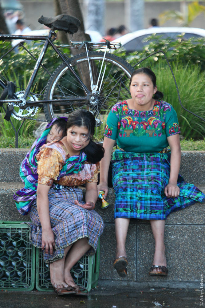 На автомобильных номерах зачем-то всегда указан ![]() В стране невероятно развиты все виды преступности от безобидной всеобъемлющей коррупции до хорошо организованных банд. Банды иногда занимают целые кварталы, куда не заходят полицейские (нечто подобное есть в Бразилии). Но в Гватемале из всех центральноамериканских стран преступность самая развитая. В столице шанс быть ограбленным на улице не ниже, чем в Йоханнесбурге. Везде висят пиктограммы, сообщающие о том, что в магазины и общественный транспорт вход с мороженым и оружием запрещен. ![]() Все, что только можно, приковано. Электросчетчики за решеткой. ![]() Домофоны на замке. ![]() Крышки люков украдут сразу, если не поставить защиту. ![]() Везде вооруженная охрана. В каждом более или менее людном месте стоит охранник с ружьем. Внутри банков стоит сейф с окном, а в сейфе — еще один охранник, которого так легко не обезвредишь. В центре кадра как раз такая конструкция (между колонной и дверями). ![]() Аэропорт охраняют по периметру вооруженные солдаты. ![]() Главный бренд в стране — пиво «Галло». Оно представлено везде. ![]() Спонсор Нового года — то же пиво. Все елки в стране украшены сверху головой петуха. Рождественская голубка не размывает ценности бренда. ![]() Бывают и муниципальные новогодние мотивы. Их легко отличить по государственной смелости, с которой олени и елочные венки закрывают дорожные указатели. ![]() Кока-кола продается в трехлитровых бутылках. ![]() Яичные лотки на три десятка обернуты рекламной упаковкой и запаяны в полиэтилен. ![]() Мороженое развозят в холодильниках, напоминающих промышленные пылесосы (как в Венесуэле). Лотки снабжены колокольчиками. Слышишь звон — едет мороженое. ![]() Деревенские жители одеваются в традиционные костюмы. ![]() Детей носят в слингах. Это, кстати, первый признак слабого развития цивилизации (супермодных евромамаш не считаем). Потому что как только в какой-то стране наступает цивилизация (например, в соседнем Гондурасе), детей тут же пересаживают в коляски или просто начинают таскать на руках. ![]() Почти все автобусы в стране снабжены багажником на крыше. Это тоже удобно, и этого тоже не бывает в развитых странах. ![]() Почти все автобусы (кроме «новых» моделей) — американские школьные. Ничего более жесткого и неудобного на свете не существует. Во всех соседних странах распространены такие же гробы на колесах. ![]() Знак автобусной остановки. ![]() В Гватемале помимо обычной полиции есть дорожная. Ее фирменный цвет — зеленый. Сотрудники дорожной полиции носят зеленые нагрудники. ![]() Расставляют на дорогах зеленые конусы. ![]() Ездят на мотоциклах с зелеными маячками в зеленых жилетах. ![]() И в зеленых машинах с зелеными мигалками. ![]() Гватемальский копатель. ![]() Километровый столб с номером дороги в гербовом контуре. ![]() Знаки «лежачий полицейский» бывают разных видов. ![]() На парковке у торгового центра отдельное место выделено для беременных. На знаке с надписью «футура мама» изображен знакомый нам аист с ребенком, а пиктограмма на асфальте изображает аиста, несущего в пеленке молочную бутылочку. Такого я никогда не видел. ![]() |