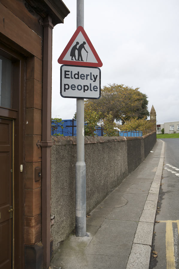 ШотландияНа карте мира1720 октября 2008 Московское рекламное агентство, занимающееся виски «Грантс», придумало художественную акцию, которая заключалась в том, что пяти разным творческим людям предлагалось в непривычном для них амплуа сделать серию фотографий. Мне достался жанр рекламной фотографии, билет на самолет, адрес отеля и три бутылки виски, которые я оставил в Москве. ГирванНа карте мираВ этом городе находится завод по производству виски «Грантс». Его тут когда-то построили, потому что рядом есть озеро, откуда забирали бесплатно воду. Потом на воду ввели налог, но завод-то уже построен. Так и работает. Производство, хоть и расположено с видом на море, представляет собой абсолютно унылый индустриальный пейзаж. Кроме того, тут еще почти нет людей — все компьютеризировано. ![]() Хоть как-то еще можно было бы использовать в качестве фона бочки для виски, стоящие посреди слякоти, но для рекламной фотографии это все решительно не подходило. ![]() Сюда вообще редко кто добирается. Маленький тихий шотландский город. ![]() Все спокойно и медленно. Дорожные знаки прижимают мешками с песком, чтоб не сдуло. ![]() Везде «Пожилые люди». ![]() Рядом с супермаркетом — баки для благотворительного избавления от секонд-хенда. Можно сдать обувь и одежду малоимущим. ![]() Хотя в километре отсюда производят виски «Грантс», в супермаркете их не продают. Мне надо делать рекламную фотографию, но у меня нет бутылки. На заводе ее тоже нет — разливают где-то в другом месте. В самом супермаркете установлена замечательная станция самообслуживания. Покупатель сам проводит товары над лазерным считывателем штрихкодов, сам засовывает деньги или кредитку в аппарат и, сложив покупки в пакет, уходит домой. Все на честности построено. ![]() В Великобритании нет смесителей в рукомойниках — краны раздельные. Один с горячей, другой с холодной водой. Теоретически, надо раковину затыкать пробкой и смешивать в ней воду нужного объема и температуры. Потом мыться в этой мыльной гадости, после чего следует вынуть пробку и помыть за собой раковину. Это чудовищно, но такова традиция. А в общественных местах еще и пробку не дают. ![]() Вписываюсь в отель. Из моего окна видно суровое шотландское море, в котором торчит Эйлса-Крейг — остров, на котором добывают гранит для керлинга. Камни из других мест для керлинга не годятся. Остров и сам на керлинговый камень похож, только ручки не хватает. ![]() Первое, что спросила меня хозяйка домашнего отеля, узнав, что я из России: — Вас интересует вариаг? Я несколько раз переспрашивал незнакомое английское слово, произнесенное с тяжелым для восприятия шотландским акцентом. Оказалось, что в шести милях отсюда в море лежат останки крейсера «Варяг». Местные уже привыкли, что русские в Гирван приезжают только по этому поводу. Оказалось, что несколько лет назад съемочная группа телеканала «Россия» вычислила, что останки исторического корабля покоятся именно тут. Я заказал такси, чтобы съездить посмотреть на монумент, установленный рядом с тем местом, где лежит крейсер. Таксист сразу же предложил заехать за своим другом, который много знает про «Варяг». — Из котлов крейсера до сорока лобстеров за раз достают! — рассказал старый моряк Билл Принц. Он всю жизнь рыбачил рядом с останками корабля — но не предполагал, что это какие-то особенные останки. ![]() История 